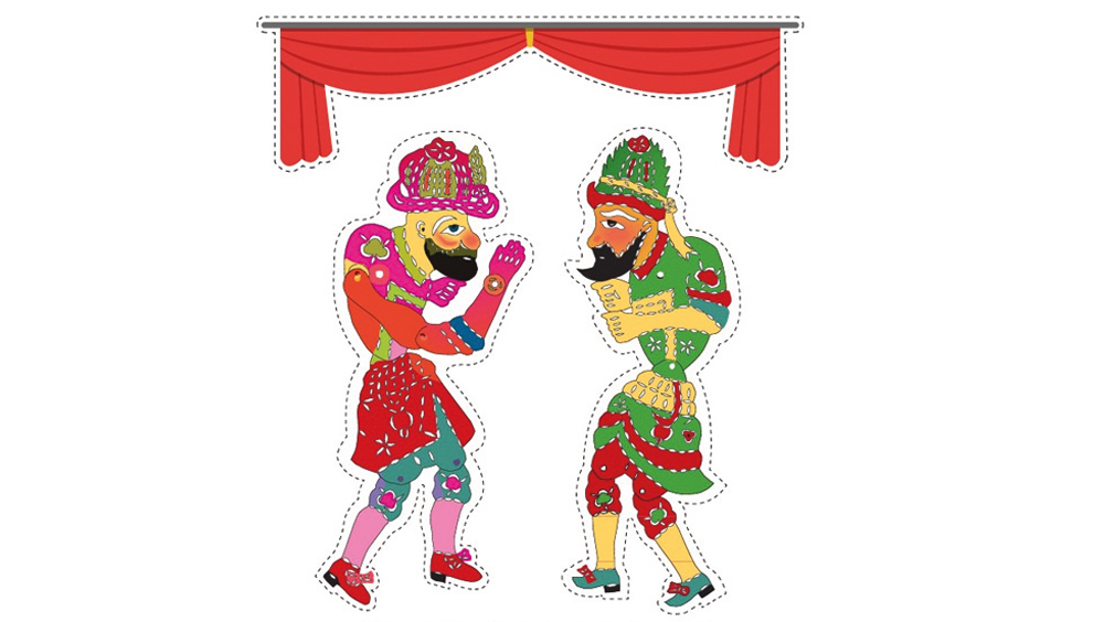 Karagöz ve Hacivat görselimizi, dikkatlice keselim. Kesilen figürlerin arkasına bir dondurma çubuğu veya pipet bantlayalım. Böylece kuklalar elde tutulup oynatılabilir. Bir beyaz kâğıdı veya ince kartonu masa üzerine dik şekilde yerleştirelim. Arkasına bir masa lambası veya telefon ışığı koyalım. Kuklaları ışık ile kâğıt arasına getirerek gölge oluşturarak oynatalım. Oyunun sözlerini kendiniz yazabilirsiniz.