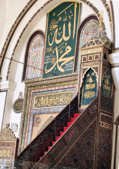 Mihrabın da sanat ve tezyinatta minberden pek geri kalmadığını, o sahada sanatın şaheseri olduğunu müşahede eden Yıldırım Han, camiinin diğer aksamında yirmi bir hattatın hattettiği kırk beş Esma-i Hüsna hattını, Peygamber-i Zîşanı, halifelerinin, torunlarının ve bazı sahabelerinin isimlerini ihtiva eden hat levhasını, onlar kadar sanatlı ve mana dolu seksen yedi duvar yazısını, desen, tezhip, çini, vitray, mahfel, kürsü gibi aksamın da hârikulâde olduğunu anlamış ve halkı ile iftihar etmişti.