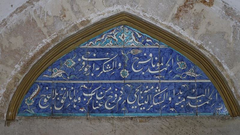 "6, 7 ve 8. beyit yok. Devamındaki 9, 10 ve 11. beyitler de yoktu. 'Ecdat eksik ve yanlış iş yapmaz. Bunlar bir yerde olmalı' diyerek cami içinde araştırmaya başladım. Eksik beyitlerin kadınlar katı olarak düzenlenmiş alan içinde bırakılarak üzerinin sıva ile kapatıldığını farkettim. Bu çiniler yaklaşık 410 yıllık bir eser. Üzerinin sıvanarak yok edilmesi hoş bir durum değil. Hanımlar katının cumhuriyetin ilk dönemlerinde yapıldığını düşünüyoruz. Oysa caminin orijinal yapısında böyle bir bölüm yok. Zaten böyle bir bölümün yapılması çok anlamsız. Kadınlar için cami girişinde alanlar zaten mevcut."