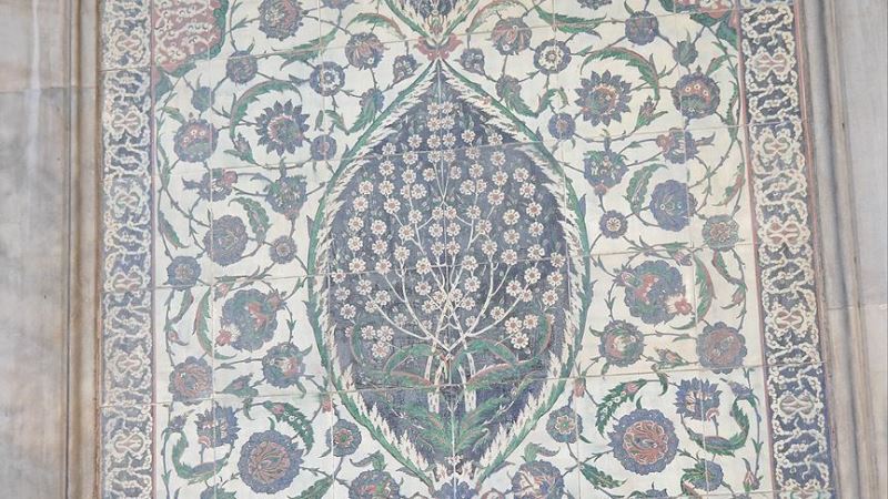 Türbenin sağında bulunan 60 adet çini hakkında değerlendirmede bulunan Cengiz, "Bu çiniler 1890'lı yıllarda, Osmanlı devletine dişçi olarak gelen, Fransa uyruklu Albert Dorigny tarafından restorasyonu yapılmak üzere Fransa'ya götürülüp taklidi yapılarak daha sonra buraya monte edilen çinilerdir. Hemen sol tarafından ise bunun kardeş çinileri var ve baktığınızda iki çini pano arasındaki farklı görürsünüz. Bu çiniler aslında 16. yüzyıl İznik çinilerinin en mükemmel örneklerindendir." diye konuştu.