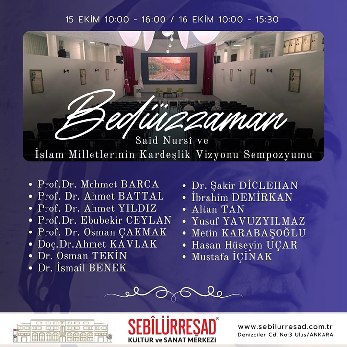 Sebilürreşad Vakfı, Bediüzzaman'ın vefatının 65. yılı için "Said Nursî ve İslâm Milletlerinin Kardeşlik Vizyonu" başlıklı bir sempozyum düzenliyor.