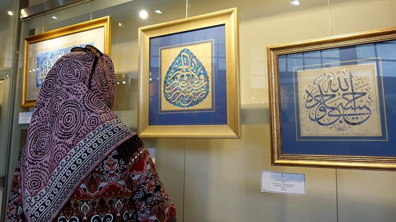 Eminönü Yeni Cami Hünkar Kasrı'nda açılan karma sergiye ilişkin açıklama yapan serginin küratörü Berna Karadoğan, sergide 10 sanatçının porselen, hat, ebru, resim, minyatür, seramik, çini ve tezhip alanında 74 eserinin yer aldığını söyledi.