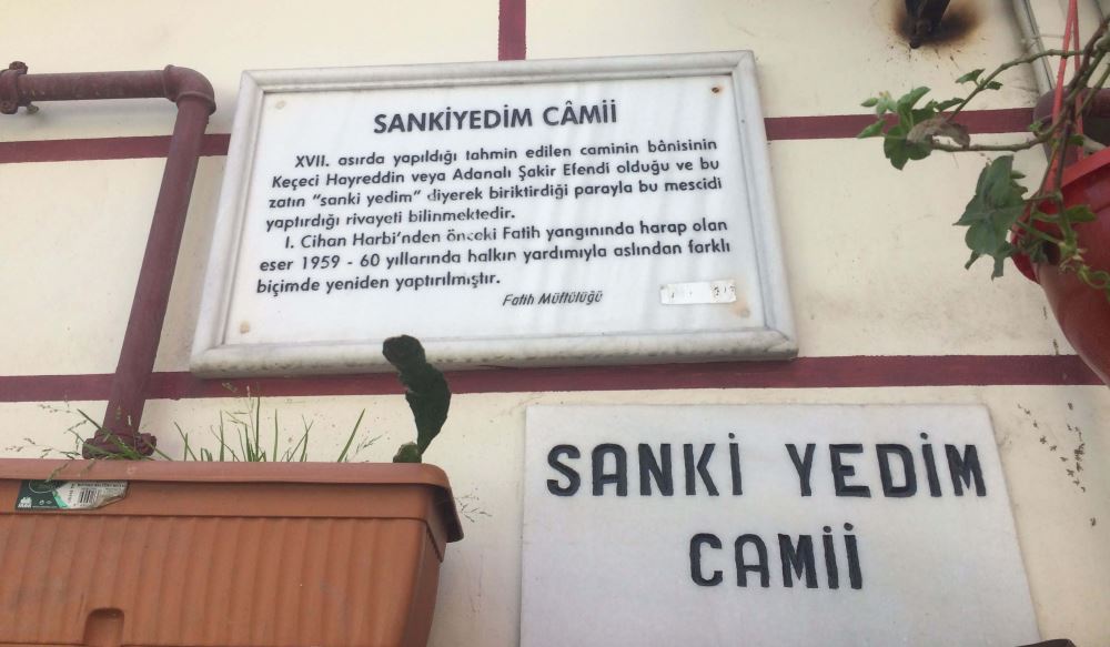 Ne zaman canı bir şey istese, “Sanki yedim!” deyip, parasını bir kenara koymuş. Bu şekilde 20 yıl boyunca biriktirdiği paralar küçük bir cami yaptıracak miktara ulaşmış ve Sanki Yedim Camii'ni yaptırmış. Sanki Yedim Camii, İstanbul’un Fatih ilçesinde, Zeyrek mahallesi, Kırbacı Sokağı’nda yer alır. 17. yüzyılda yapıldığı tahmin edilmektedir.