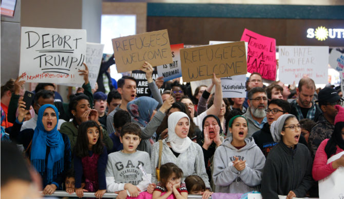 ABD’nin Seattle, Chicago, New York gibi şehirlerinde kalabalık yürüyüşler düzenlendi. “Müslüman komşularımı seviyorum” pankartı açıldı. Airbnb, Netflix, Starbucks ve Apple’ın CEO’larından mültecilerle dayanışma mesajları yayınladı. Google kendi çalışanlarından topladığı 2 milyon dolarlık bağışı Müslümanlar ve mülteciler için ayırdı, kendi kasasından da 2 milyon dolar kriz fonu oluşturdu. ABD’li senatör Chris Murphy, Kanada Başbakanı Justin Trudeau, ABD eski Dışişleri Bakanı Madeleine Albright… Bütün bu siyasiler Müslüman yasağını kınadı. Sanatçılar, oyuncular, kısacası herkes bir araya geldi.