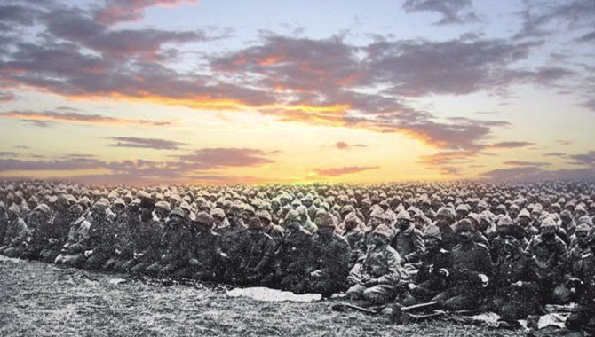 "Çanakkale içinde aynalı çarşı / Ana ben gidiyom düşmana karşı” dedi; Mehmed’ler, Abdullah’lar, Hasan’lar, Hüseyin’ler, Ali’ler, Veli’ler. İsimler ortak, ama ırk farklıydı. Kimi Türk, kimi Kürt, kimi Arab, kimi Laz, kimi Arnavut. Fakat gaye bir, gönül bir. Bunları bir araya getiren bu “bir”liklerin başında gelen şey ise, din ”bir”di.