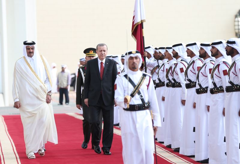 Cumhurbaşkanı Recep Tayyip Erdoğan, Katar Emiri Şeyh Tamim Bin Hamad Al Sani tarafından resmi törenle karşılandı.