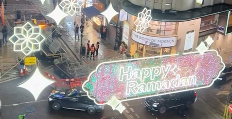 Aziz Foundation adlı vakıf ile Londra Belediyesi işbirliğiyle geometrik desenlerle süslenen caddeye, ışıklarla "Mutlu Ramazanlar" yazıldı.