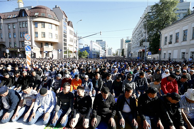 Rusya’nın başkenti Moskova'da bayram namazı için camilere sığmayan binlerce Müslüman, caddelerde saf tutmak zorunda kaldı.