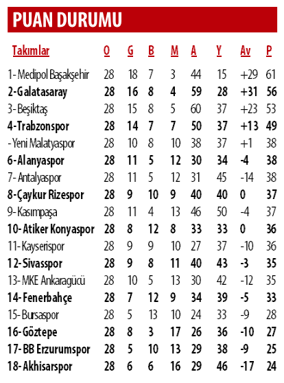 süper Lig'de 28. hafta maçları tamamlanırken, Beşiktaş'a deplasmanda 2-1 mağlup olan Medipol Başakşehir, 61 puanla liderliğini sürdürdü. Beşiktaş’ta 4. yılını geçiren teknik direktör Şenol Güneş bu sezonun ikinci yarısında büyük hayal kırıklığı yaşatırken, ikinci devrede bambaşka bir görüntüye büründü. Beşiktaş, ligin ilk yarısındaki 17 maçta 7 galibiyet ve beşer beraberlikle yenilgi alarak 26 puan toplayabildi. Beşiktaş, sezonun ikinci devresinde oynadığı 11 maçta ise ilk bölümdeki performansını geride bırakmayı başardı. Beşiktaş, bu periyotta 8 galibiyet ve 3 beraberlikle 27 puana ulaştı. İlk yarıda 28 gol atabilen siyah-beyazlılar, ikinci yarının 11 mücadelesinde ise fileleri 32 kez havalandırdı.