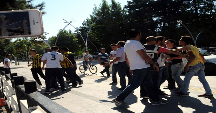 Münakaşa, daha sonra kavgaya dönüştü. Polis ekiplerinin güçlükle ayırabildiği kavgadan sonra her 2 takımın taraftarı olan birer kişinin gözaltına aldığı açıklandı.