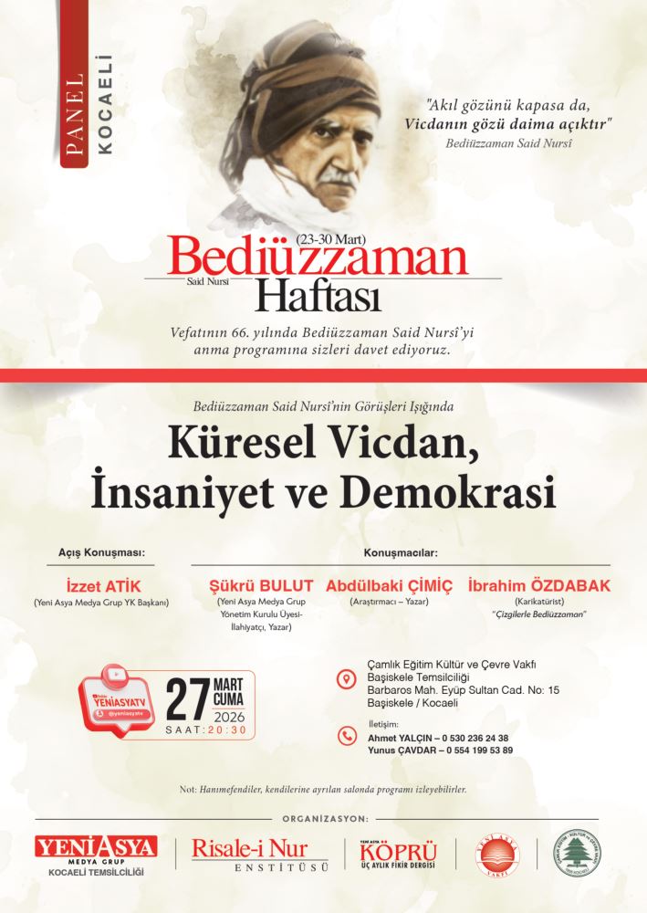 Bu bağlamda Bediüzzaman Haftası kapsamında Kocaeli'de düzenlen panelde Bediüzzaman Said Nursî’nin Görüşleri Işığında Küresel Vicdan, İnsaniyet ve Demokrasi kavramları konuşuldu.