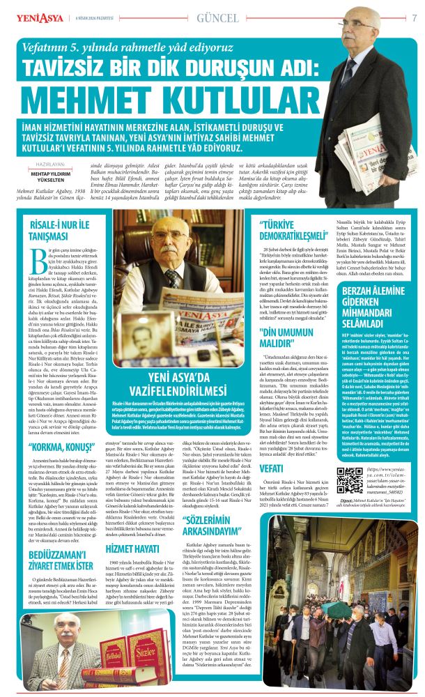 İman hizmetini hayatının merkezine alan, istikametli duruşu ve tavizsiz tavrıyla tanınan, Yeni Asya’nın imtiyaz sahibi Mehmet Kutlular’ı vefatının 5. yılında rahmetle yâd ediyoruz.