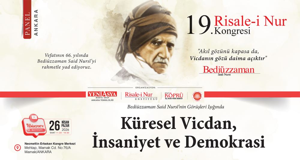 Risale-i Nur Enstitüsü tarafından “Bediüzzaman Said Nursî’nin Görüşleri Işığında/ Küresel Vicdan, İnsaniyet ve Demokrasi” başlığı ile Ankara’da gerçekleştirilecek olan 19. Risale-i Nur Kongresi hazırlıkları devam ediyor. 25-26 Nisan tarihlerinde Ankara’da gerçekleştirilecek ve iki gün sürecek olan kongreye elliden fazla ilim adamının katılması bekleniyor.
