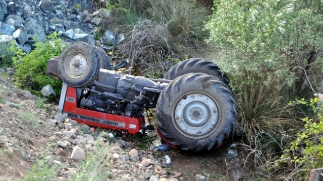 Aslan Sarı'nın kullandığı plakası belirlenemeyen traktör, Yağcıabdal köyü yakınlarında yoldan çıkarak devrildi.