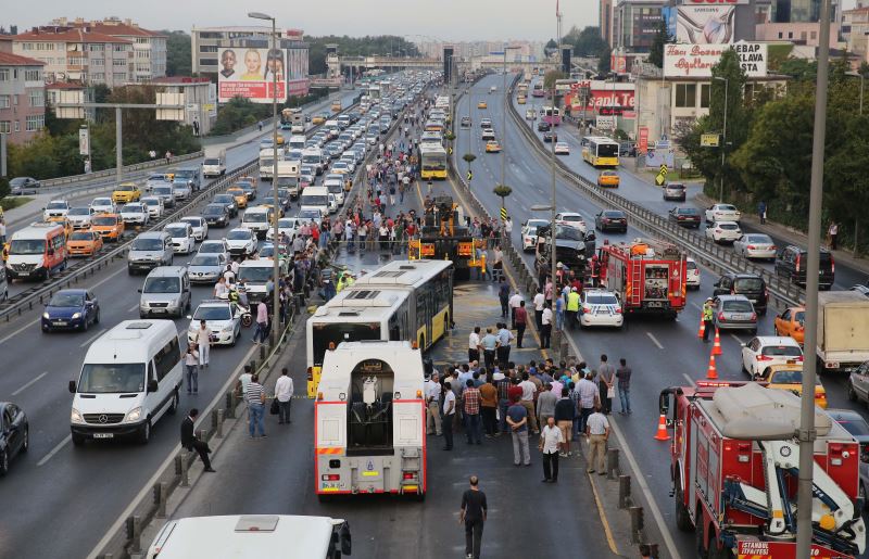 Cip, hareket halindeki metrobüsle kafa kafaya çarpıştı. Olay sonrası E-5 karayolu savaş alanına döndü. Yaralılar yerde bir süre ambulans bekledi. Olayda biri ağır olmak üzere en az 5 kişi yaralandı.