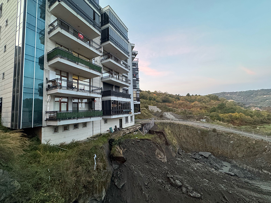 İnşaat çalışmasının durdurulduğu olayda can kaybı ve yaralanma yaşanmazken tahliye edilen apartman girişine de şerit çekildi.