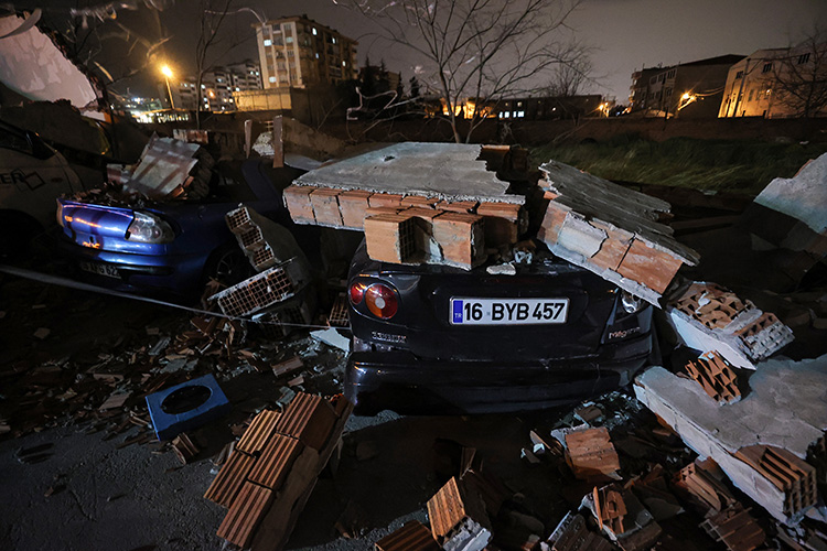 Duvar kenarında park halinde bulunan otomobil, minibüs ve pikap türü 10 araç molozların altında kaldı.