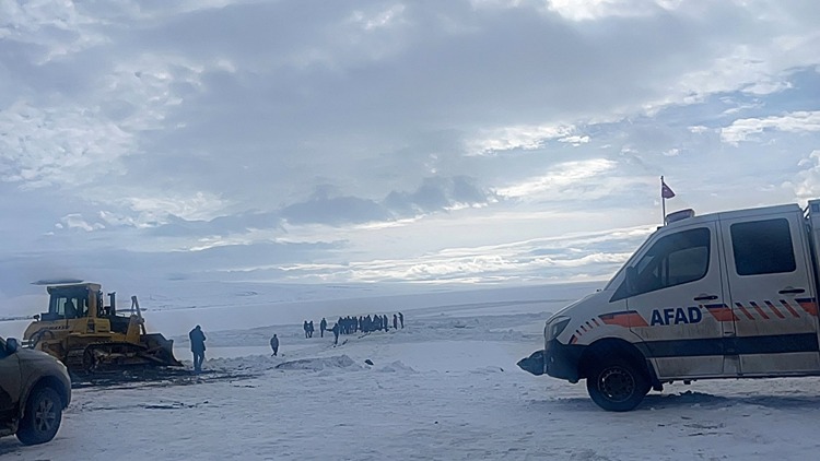 Ardahan ile Kars sınırlarında bulunan ve kış mevsiminde yüzeyi tamamen donan Çıldır Gölü üzerinde, 14 Şubat'ta gerçekleştirilmesi planlanan 10. Altın At Kristal Buz Festivali hazırlıkları için dün çalışma yapan bir traktör battı.