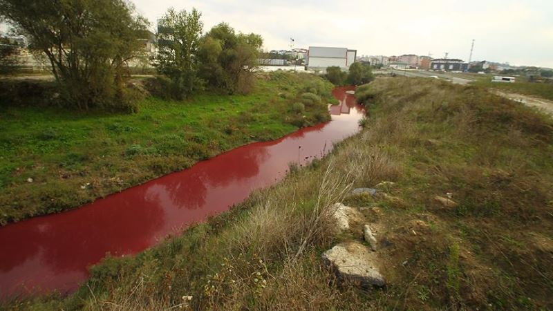 Ergene Nehri'nin kolu Çorlu Deresi fabrika atıkları nedeniyle kırmızı tonlarında akmaya başladı.