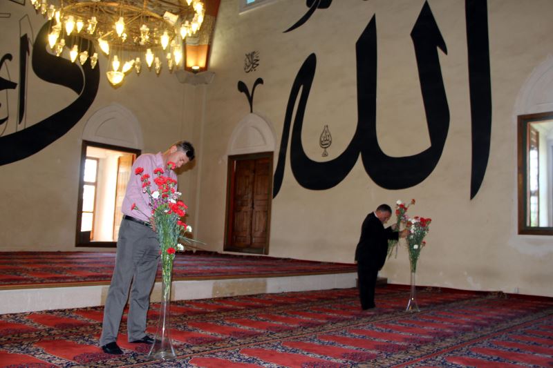 "Bu camimizle ilgili bir hususu daha gördük ve farkındalık oluşturmak için bugün uyguladık. Evliya Çelebi Seyehatnamesi'nde, 'Vakıf tarafından camiye bakmakla yükümlü olan mütevellisi vasıtasıyla gül, nergis, sümbül gibi mevsim çiçekleri vazolara konulmak suretiyle cemaatin saflarının arasına yerleştiriliyor. Böylelikle cami nurlanıp kokulanıyor' diyor. Bu yılki haftamız kapsamında Eski Cami'yi mevsim çiçekleriyle donatıyoruz."
