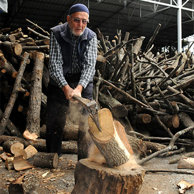 Bursa'da odun pazarında ticaretle uğraşan Halil Deniz (85), 50 yıldır her gün balta ile odun kırıyor. 'İhtiyar delikanlı' olarak anılan Halil Deniz, "Kış aylarında günde 3 ton odun kırdığım oluyor" dedi.