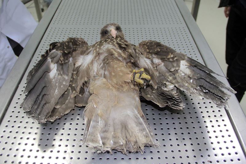 Elazığ'da kanadı kırık halde bulunan şahin ameliyat edildi.