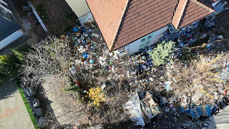 Eve giden polis, zabıta ve belediye temizlik ekipleri, dairenin ve apartmanın bahçesinin çöplerle dolu olduğunu gördü.