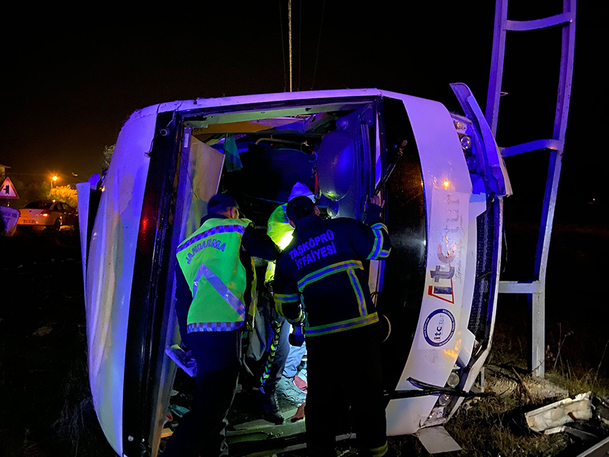 Kastamonu Valiliğinden yapılan açıklamada, "Taşköprü-Kastamonu kara yolunda 21.30 sularında tur midibüsünün yan yatması suretiyle trafik kazası meydana gelmiştir." ifadesine yer verildi.