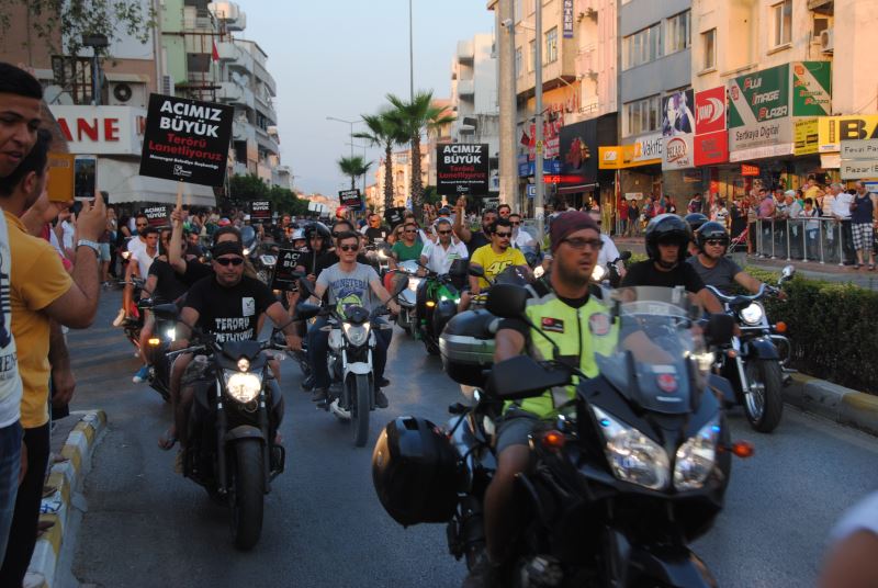 Antalya'nın Manavgat ilçesinde 5 bin motosikletçi son günlerde ülkede artan terör olaylarını kınadı.