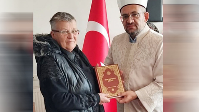 Kelime-i Şehadet getiren kadın, “Zehra” ismini aldı. Kurşun’a Kur’ân-ı Kerîm ve İhtida Belgesi verildi.