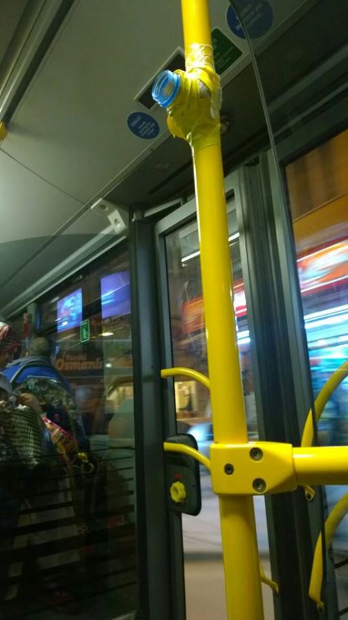 "Kocaeli Büyükşehir Belediyesi 'Mikrop taşıma projesi' mi yürütüyor? Kocaeli Büyükşehir Belediyesi sağ olsun yeni otobüsler alıyor. Ancak gelin görün ki trilyonları harcadıkları araçların içine böylesi ilkel ve insan sağlığına zarar verecek uygulamalar yapıyorlar. Otobüslerdeki duracak zillerinin etrafına hem estetik duran hemde daha sağlıklı bir uygulama yapacak ustayı Kocaeli sanayisinde bulamamışlar mı? Çalışmışlar da olmamış mı? Büyükşehir Belediyesi ve İbrahim Karaosmanoğlu'na yakışıyor mu bu yapılan ilkel ve sağlıksız çözüm?"