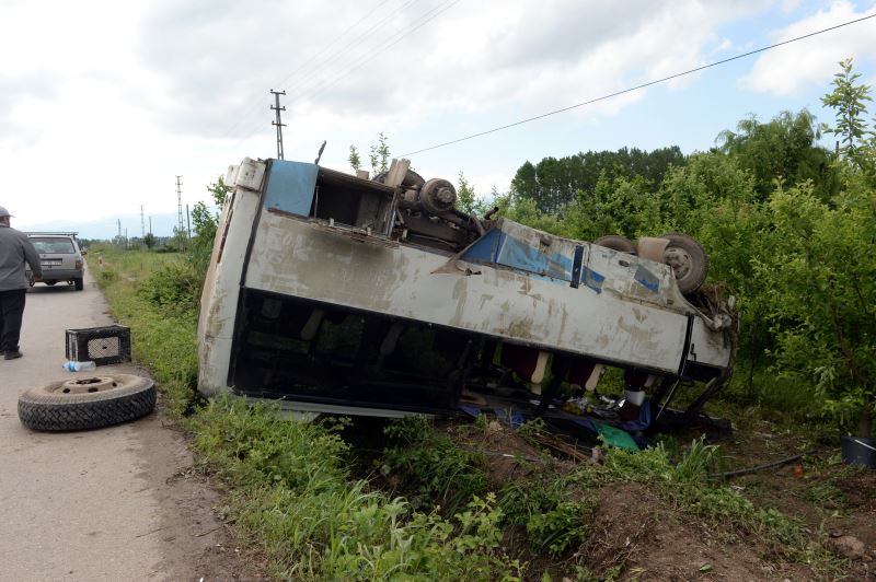 Alınan bilgiye göre, Ali Tunç (55) yönetimindeki 55 BF 379 plakalı tarım işçilerini taşıyan minibüs, Tokat-Turhal karayolu Çaylı köyü yakınlarında tarlaya devrildi.