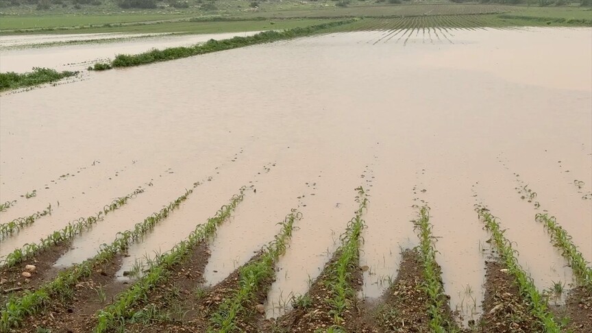Osmaniye'de etkili olan sağanak nedeniyle bazı tarım arazileri su altında kaldı.