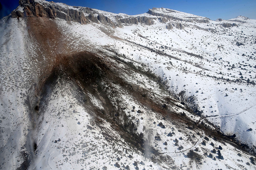 Dağın bulunduğu alana jandarma helikopteriyle ulaşan uzmanlar inceleme yaptı.
